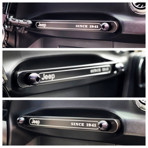 Billet Jeep Grab Bar designed with strength and function in mind. Included ball mounts allow you to mount Phones, Tablets, Cameras, Radios and anything else you can think of that fits this space.